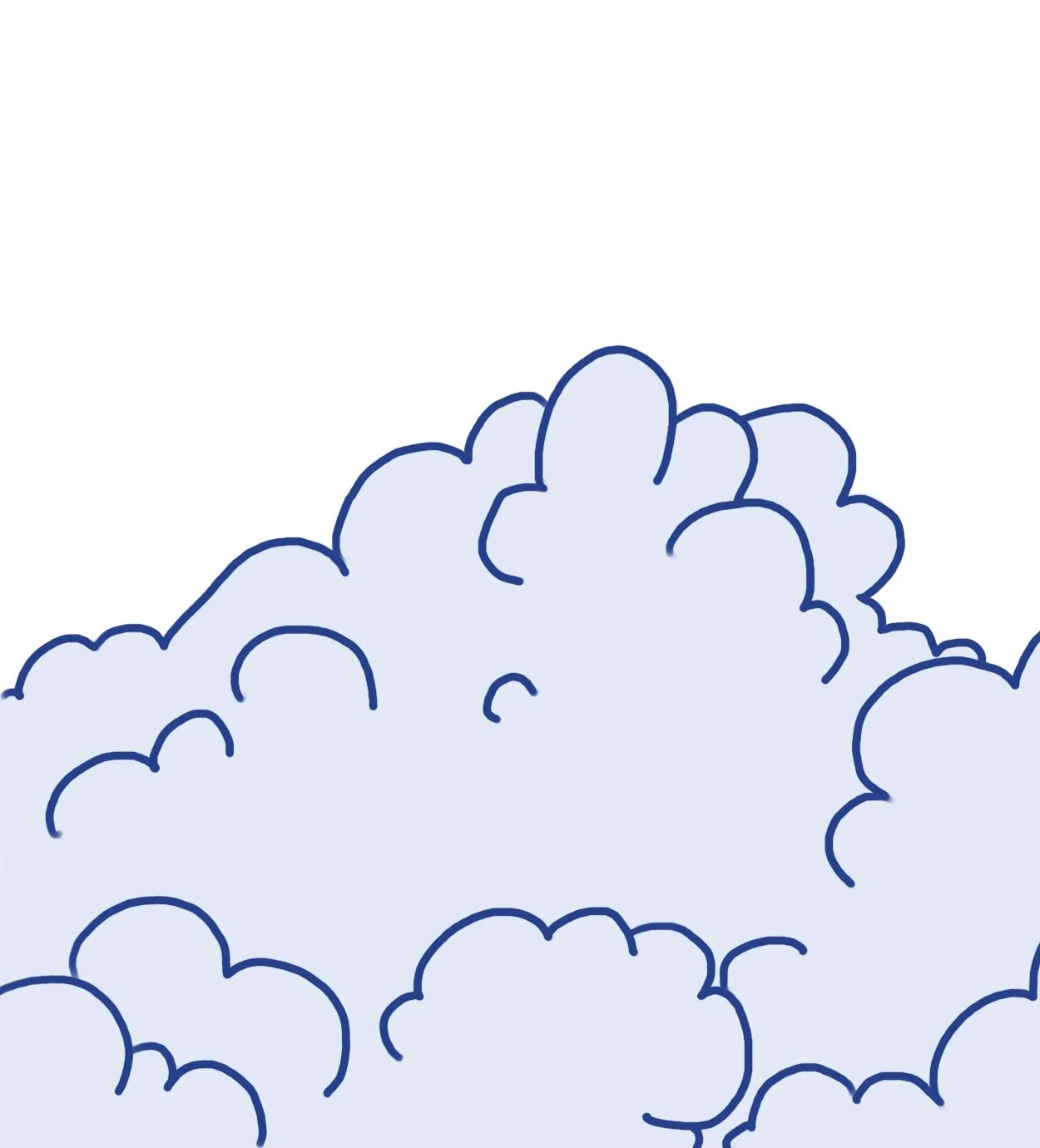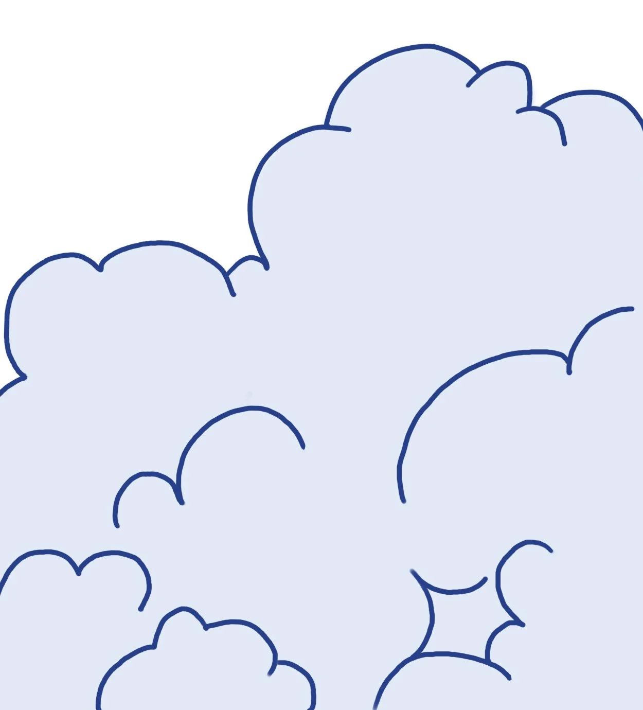 An illustration of large, fluffy clouds outlined in blue, filled with a light blue color against a white background.