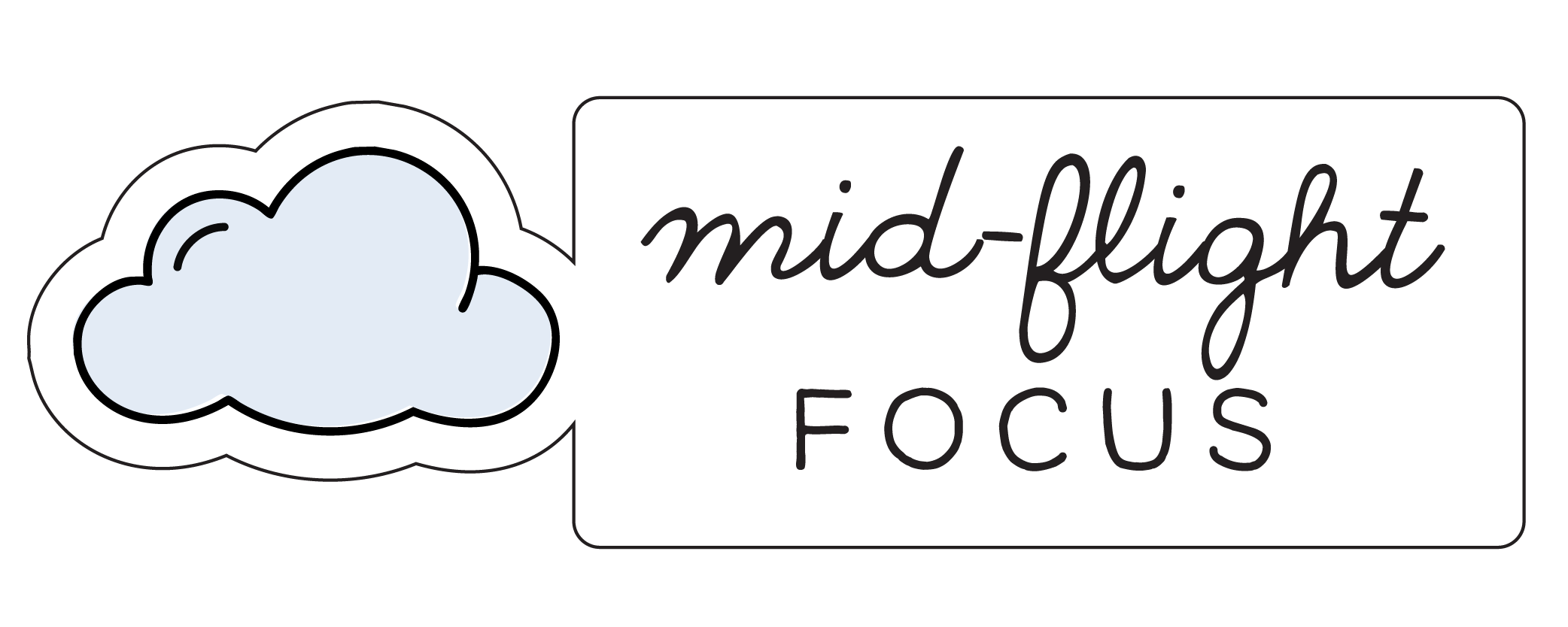 Logo with a cloud illustration and the text 'mid-flight' in cursive and 'FOCUS' in block letters.