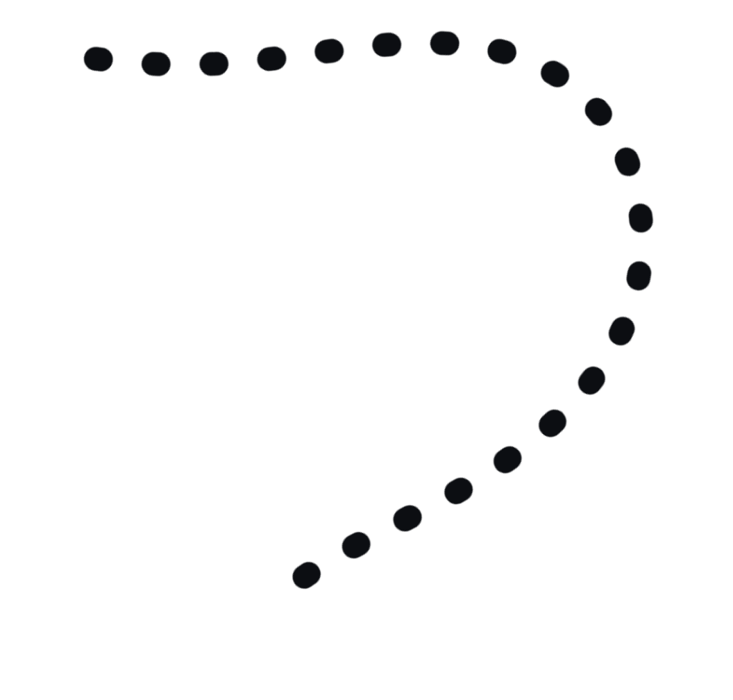 A black background with a dotted white line forming a downward-curving arrow.