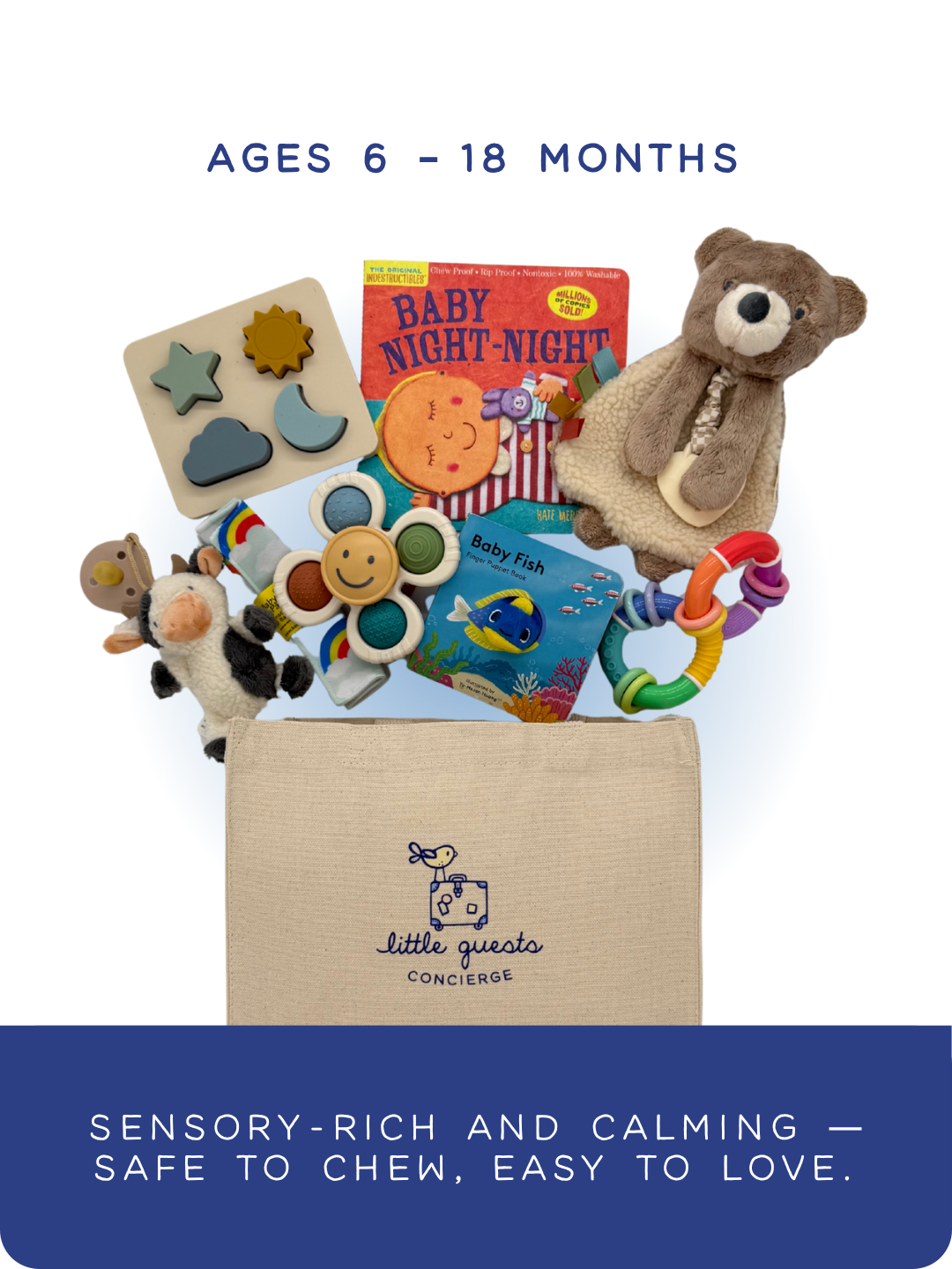 Cue calm with cozy story cards and soothing items that help signal it's time to rest.