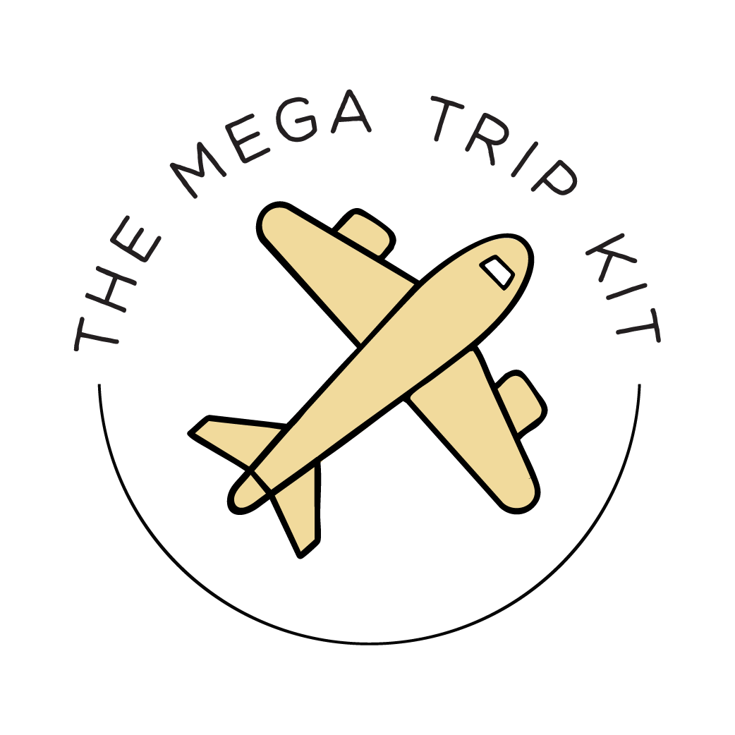 Graphic logo with two crossed airplanes and the text 'The Mega Trip Kit' around the top.