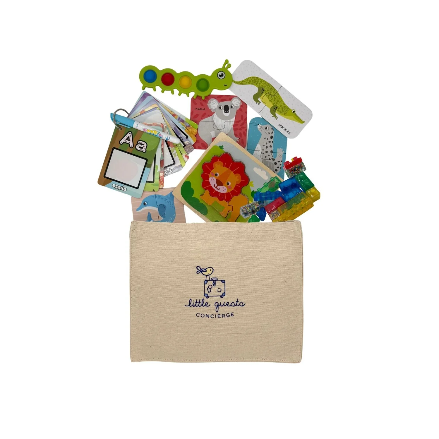 Every item is safe, mess-free, and developmentally appropriate, turning a travel day into a calm, screen-free journey. From sensory-rich toys to quiet rest-time items, this kit helps you fly with more peace and more play.